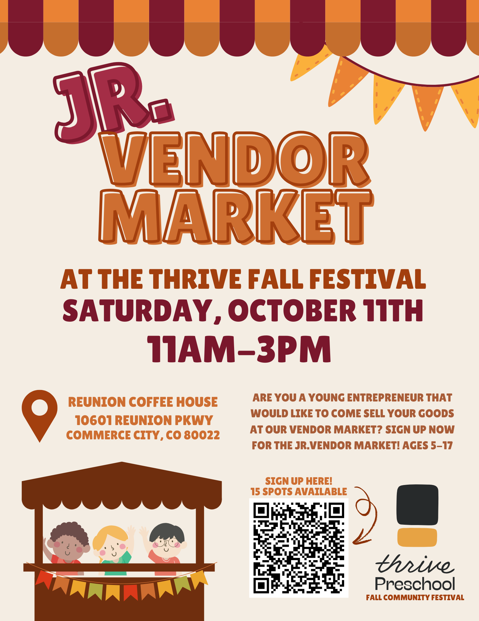 Join us for the Jr. Vendor Market at the Thrive Fall Festival! 🍂✨